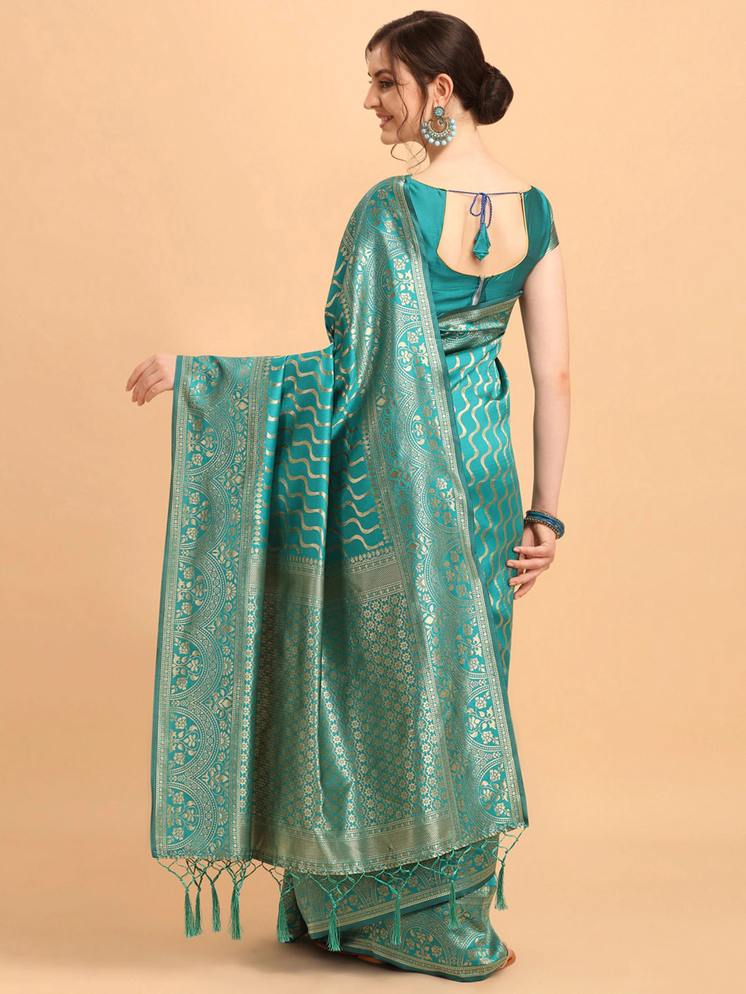The blouse worn by the model might be for modelling purpose only. Check the image of the blouse piece to understand how the actual blouse piece looks like.