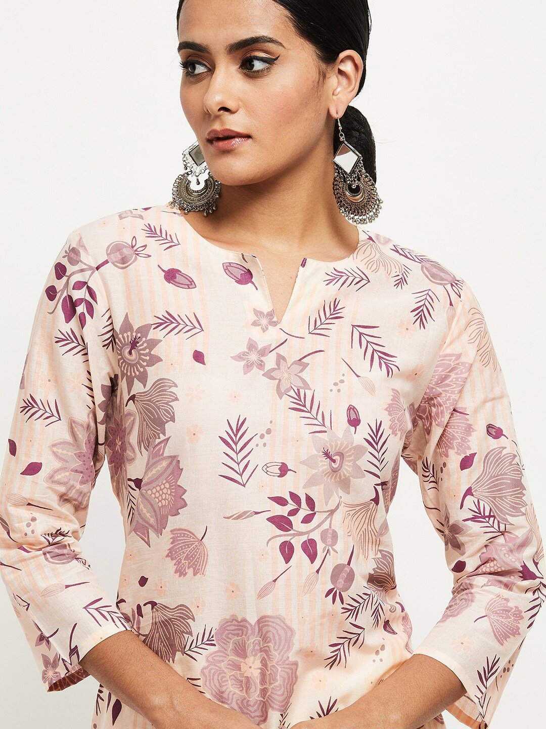 Women Multicoloured Floral Pure Cotton Kurti with Trousers