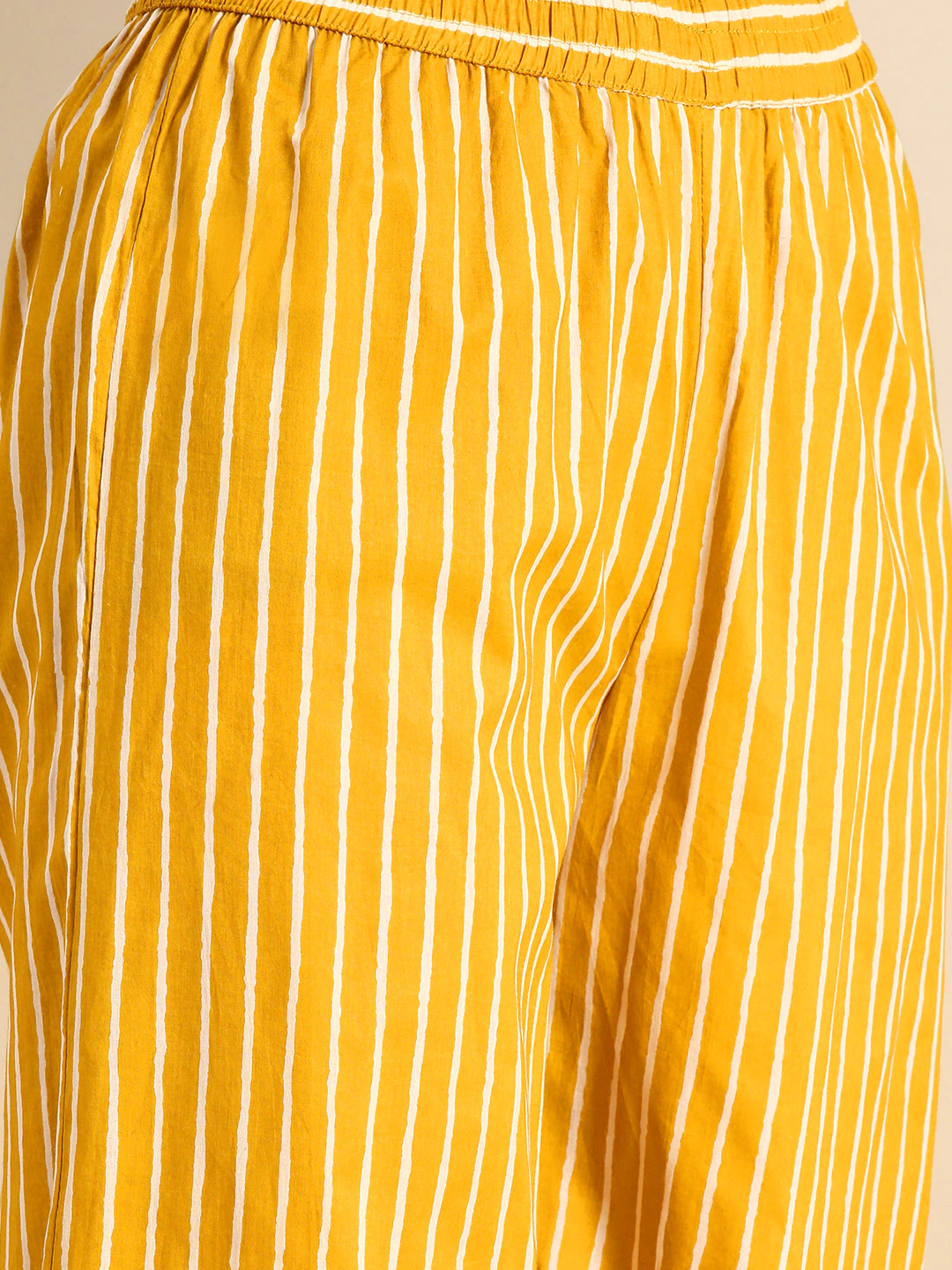 Yellow and white Printed palazzos, has partially elasticated waistband